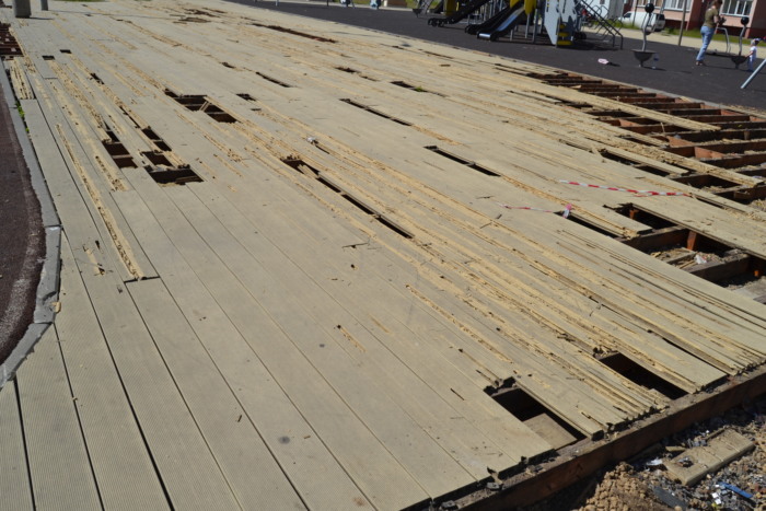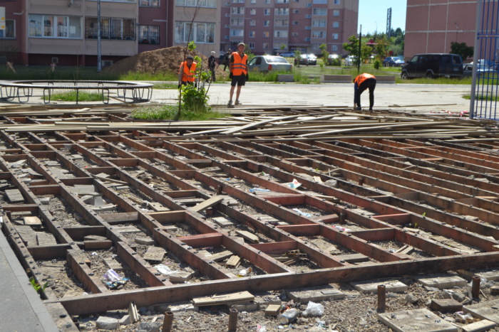 На этой неделе подрядная организация начала ремонт в сквере в микрорайоне "Московский". Старое изношенное покрытие заменят на долговечную тротуарную плитку. Ее уложат в виде «пиксельного» рисунка трех цветов: красного, коричневого и серого .