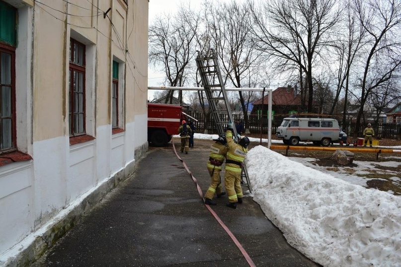 В лицее Пучежа провели эвакуацию. По легенде учений, которые провели на днях, загорелась школьная раздевалка. Дым дошел до второго этажа и отрезал путь к спасению двух человек. Добраться до них пожарные смогли на трехколенной лестнице.