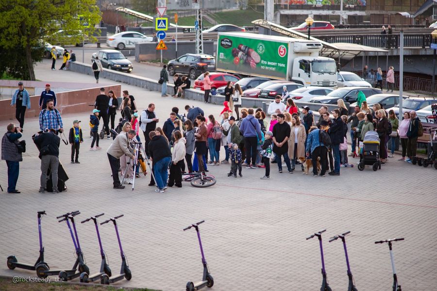 "Определенный шарм мероприятию придавали присоединившиеся к огромным очередям уличные музыканты, исполнявшие довольно разношерстный репертуар - от "Нирваны" до "Гражданской обороны". Зрители аплодировали", - отметили организаторы "Тротуарной астрономии".