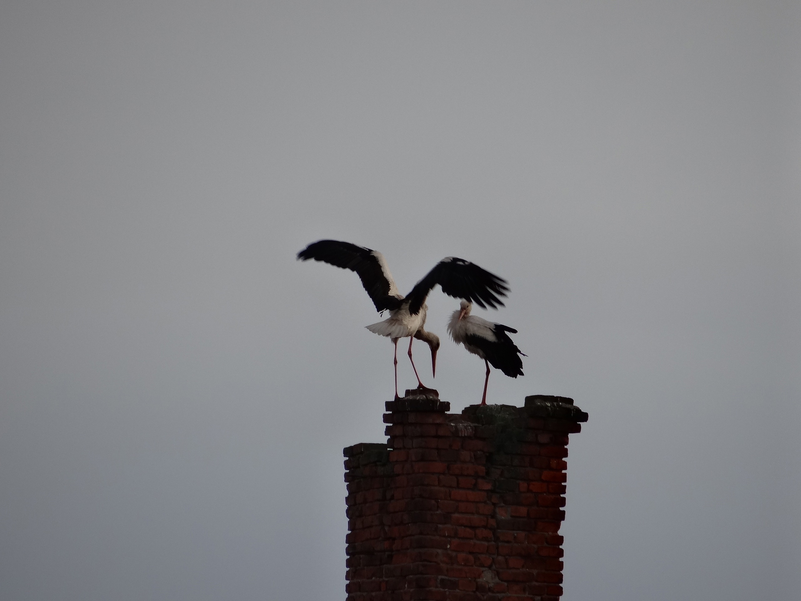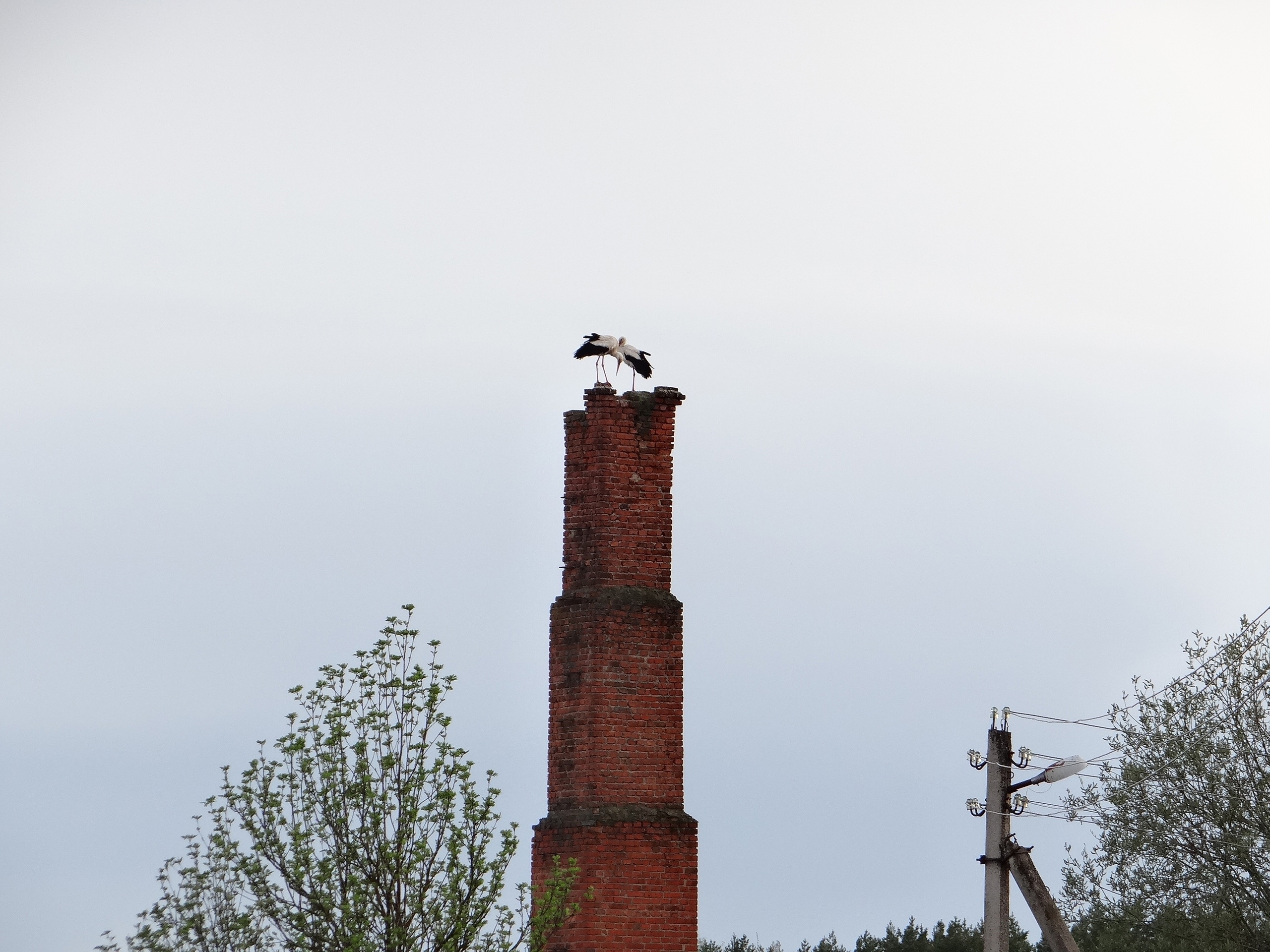Пару аистов она запечатлела в самом центре села, на трубе бывшей котельной. Птицы чистили перышки и осматривали окрестности, нисколько не стесняясь машин и крика индюков из хозяйств. Белых аистов видели и на столбах электросетей.