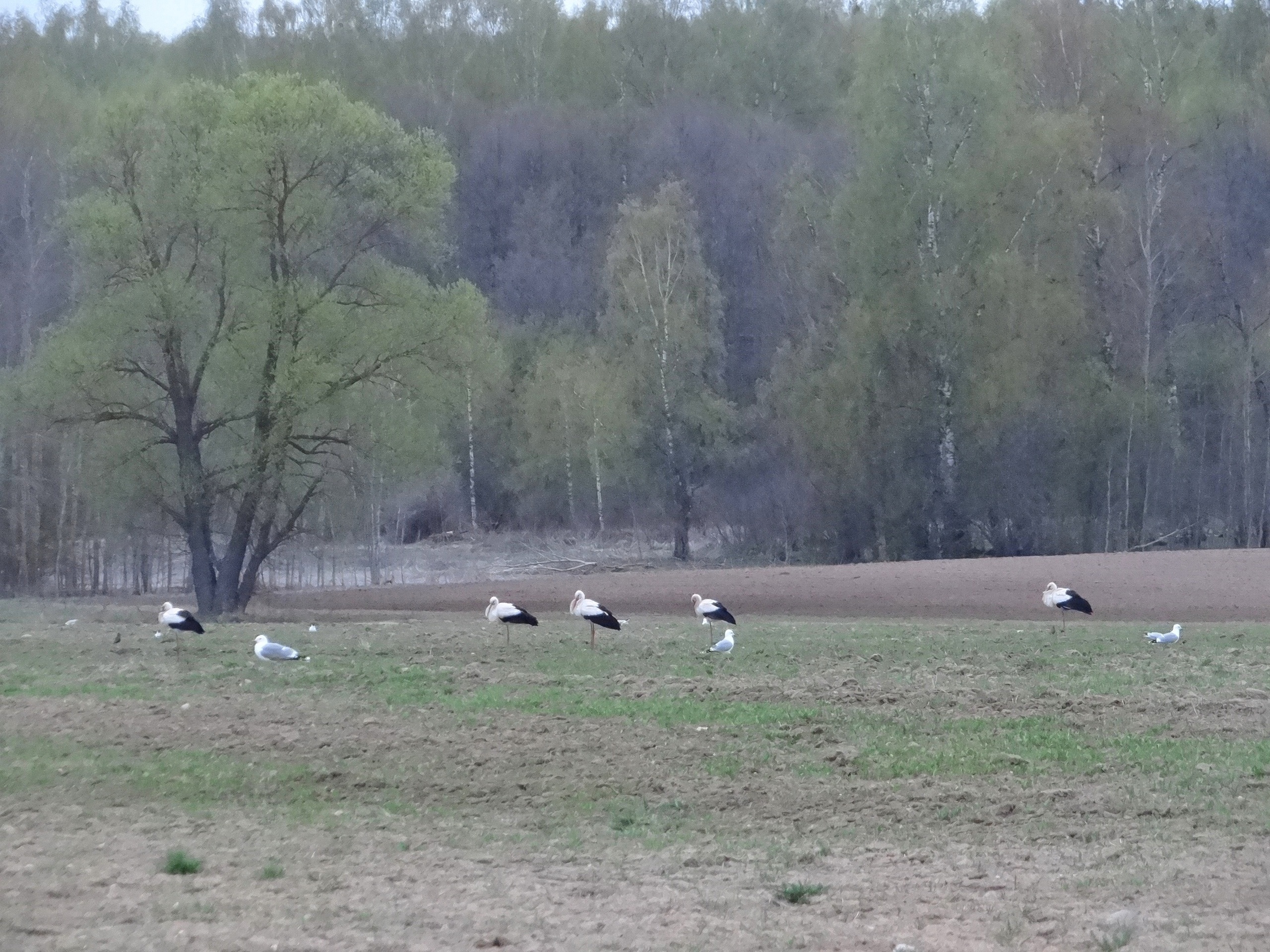 Сегодня нашей редакции из села Центральный сообщили, что кроме пятерки аистов заметили и такое же число серых журавлей.
