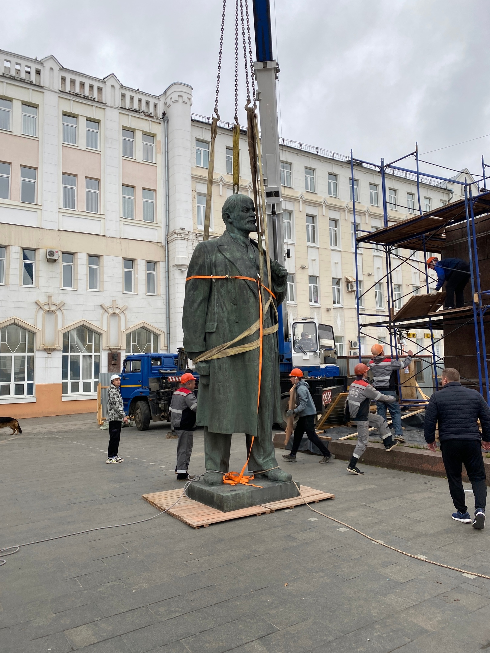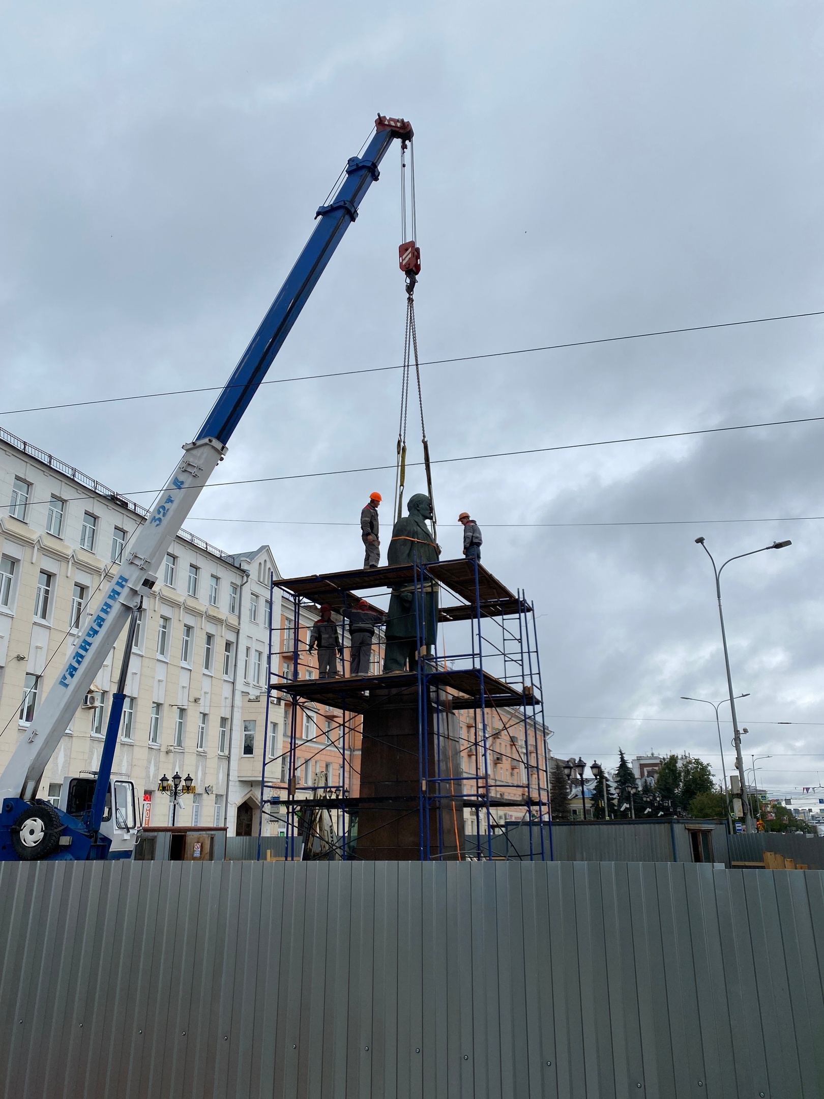 "Ранним утром исключительно профессионально и бережно снят с постамента и отправлен на реставрацию памятник Ленина с одноименной площади. В ближайшее время начнется разбор гранитных плит постамента памятника", - заявили в ведомстве.