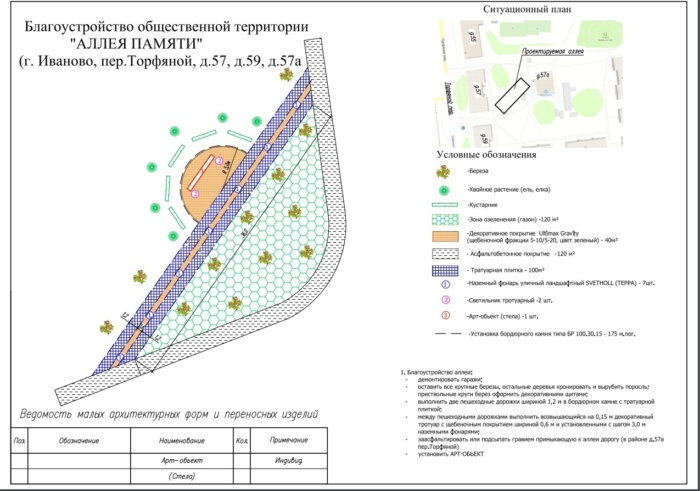 В Иванове благоустроят "Аллею памяти". Она появится в Торфяном переулке. Жители ТОСа "Силикатный" спроектировали дизайн проекта, который победил в конкурсе "Местных инициатив". На территории появятся новые тротуары, зона тихого отдыха и арт-объект. Планируется снести старые гаражи и аварийные деревья, при этом сохранив березы.