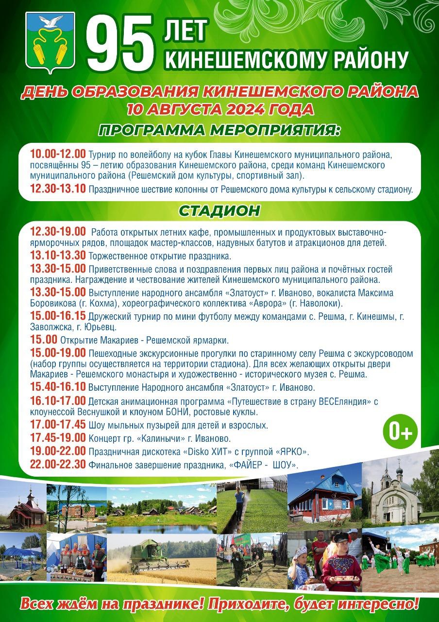 С подробной афишей можно ознакомиться в соцсетях администрации Кинешемского района.
