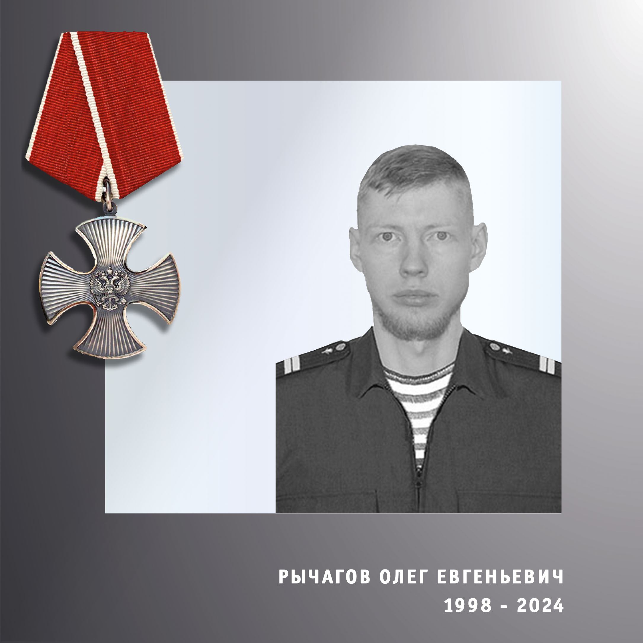 Старший разведчик – снайпер Олег Евгеньевич Рычагов проходил службу на территории другого региона. За проявленные храбрость и самоотверженность представлен к награждению Орденом Мужества посмертно.