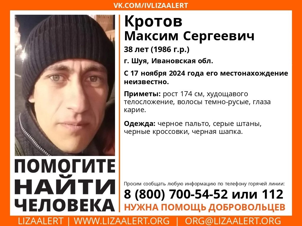 В Шуе разыскивают двух пропавших. Местонахождение 37-летней Марии Барановской неизвестно с 22 ноября. А Максим Кротов 38-ми лет пропал 17 ноября.