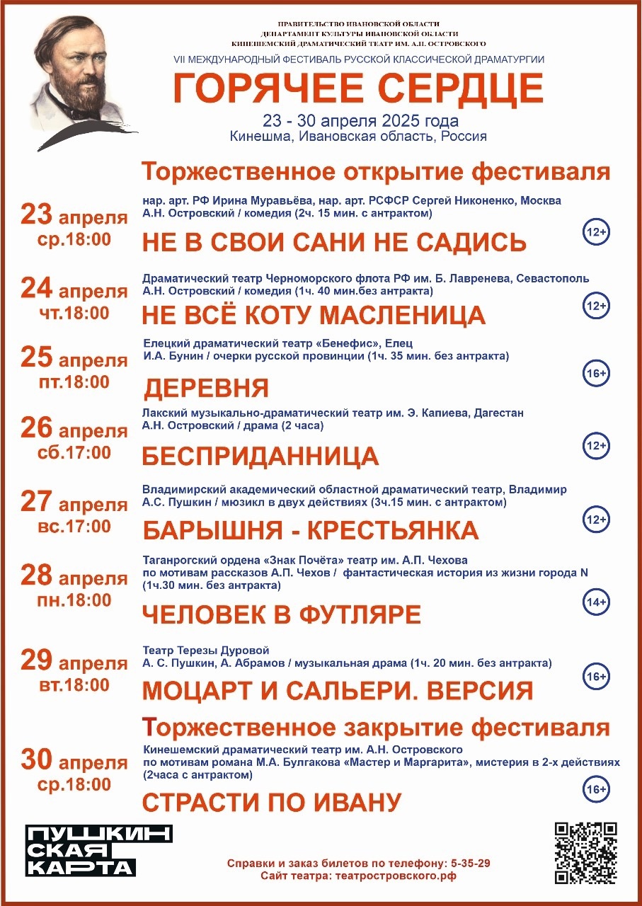 Фестиваль русской классической драматургии "Горячее сердце" состоится в Ивановской области. Он пройдет с 23 по 30 апреля. В Кинешемском драмтеатре имени Островского идет подготовка к мероприятию.