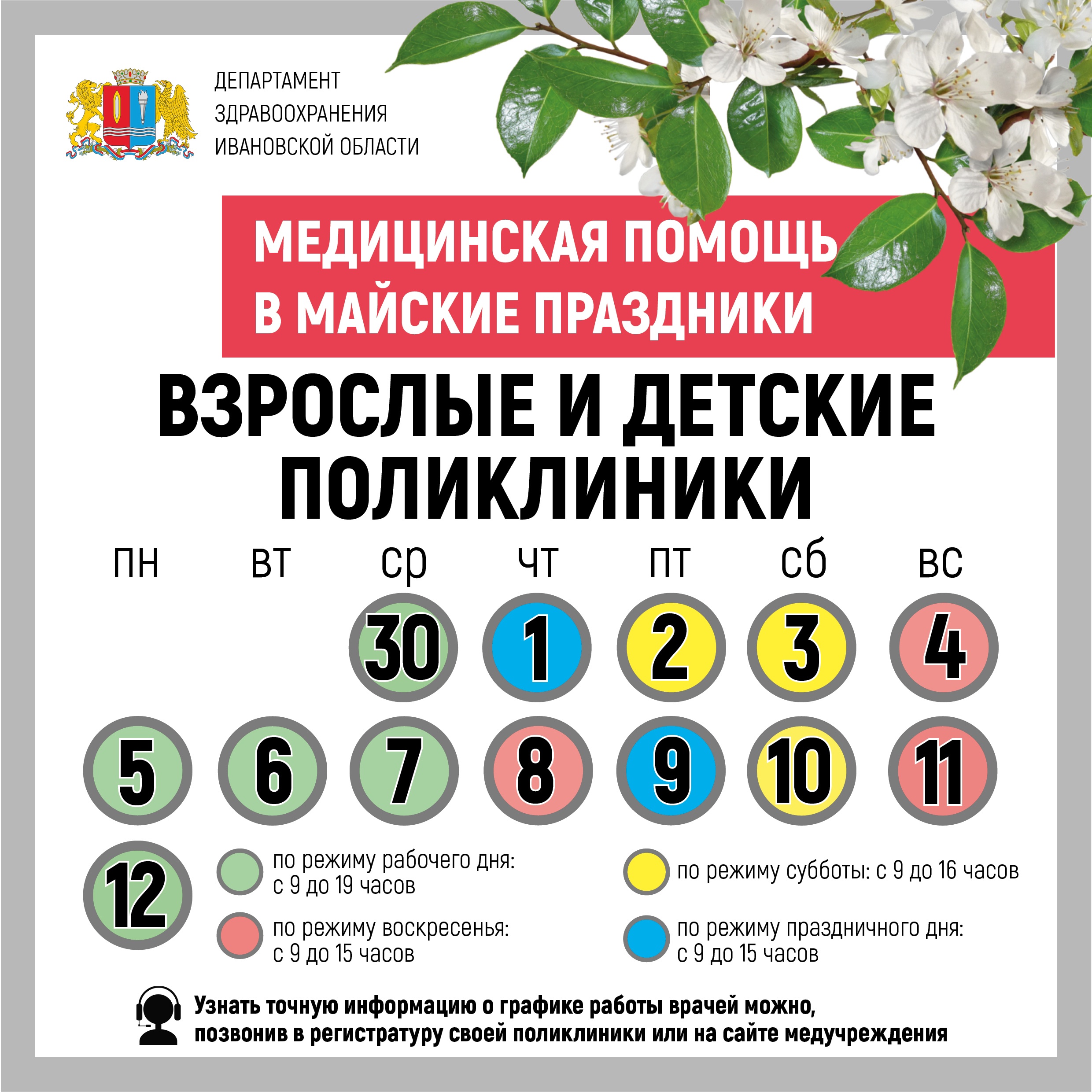 В майские праздники медучреждения Ивановской области работают по особому графику.