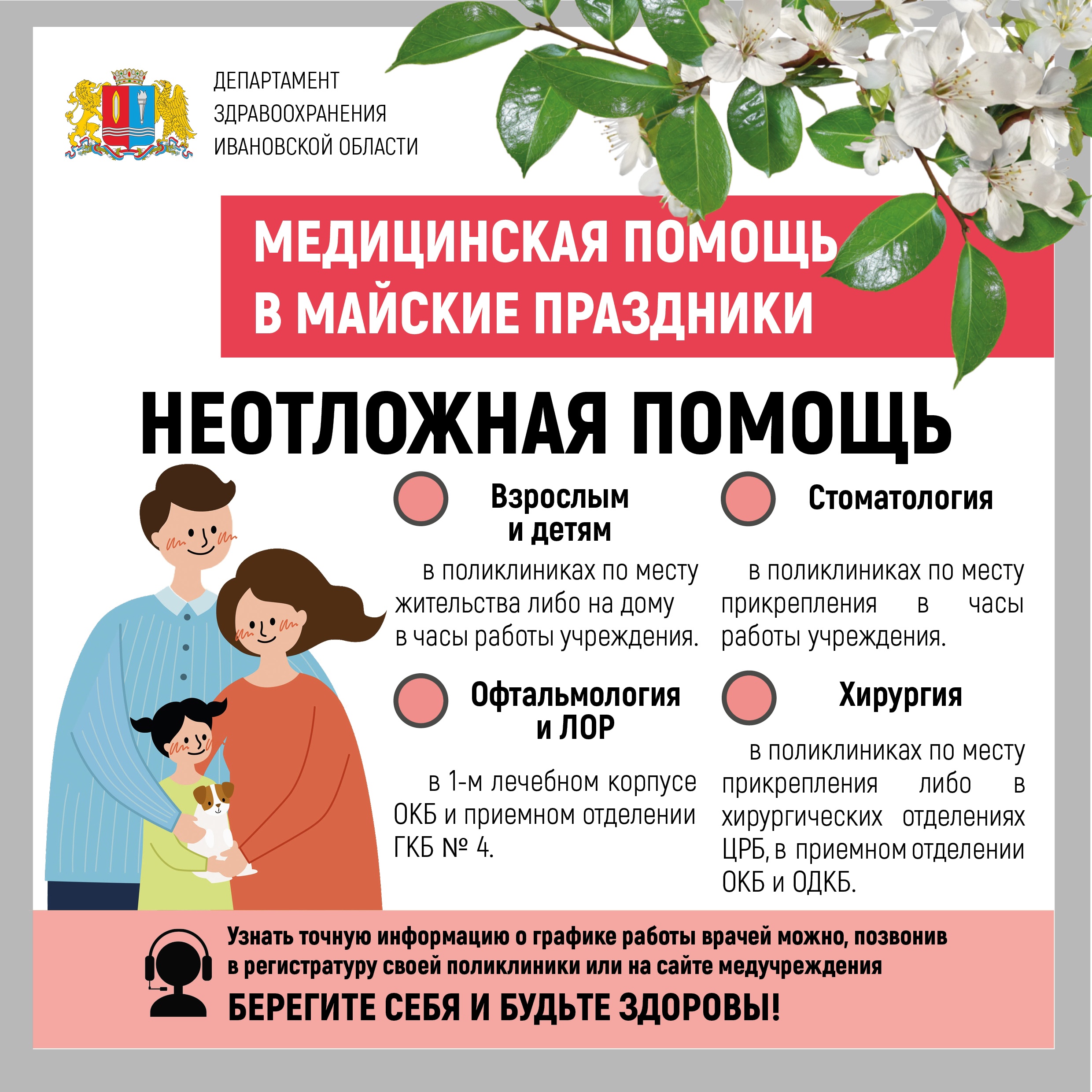 В майские праздники медучреждения Ивановской области работают по особому графику.