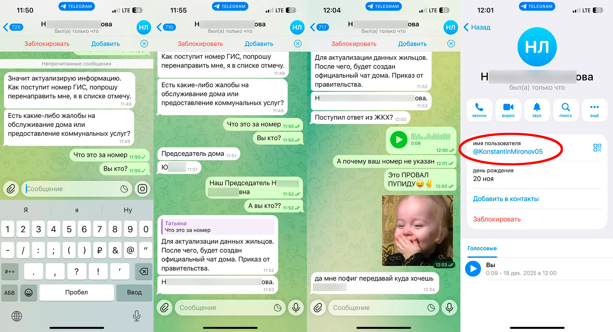 На них видно, что жительнице одного из домов написала якобы председатель ТСЖ и просит прислать «номер» для актуализации данных при переходе в новый чат дома. В итоге ивановке пришло СМС с четырехзначным кодом. У женщины появились подозрения, и она не стала никому называть цифры. На вопрос об отсутствии в профиле пользователя реального номера телефона – получила порцию оскорблений.