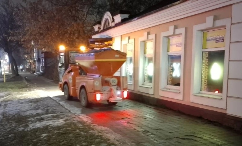 На работы по обработке проезжих частей и тротуаров вышли 28 единиц спецтехники
