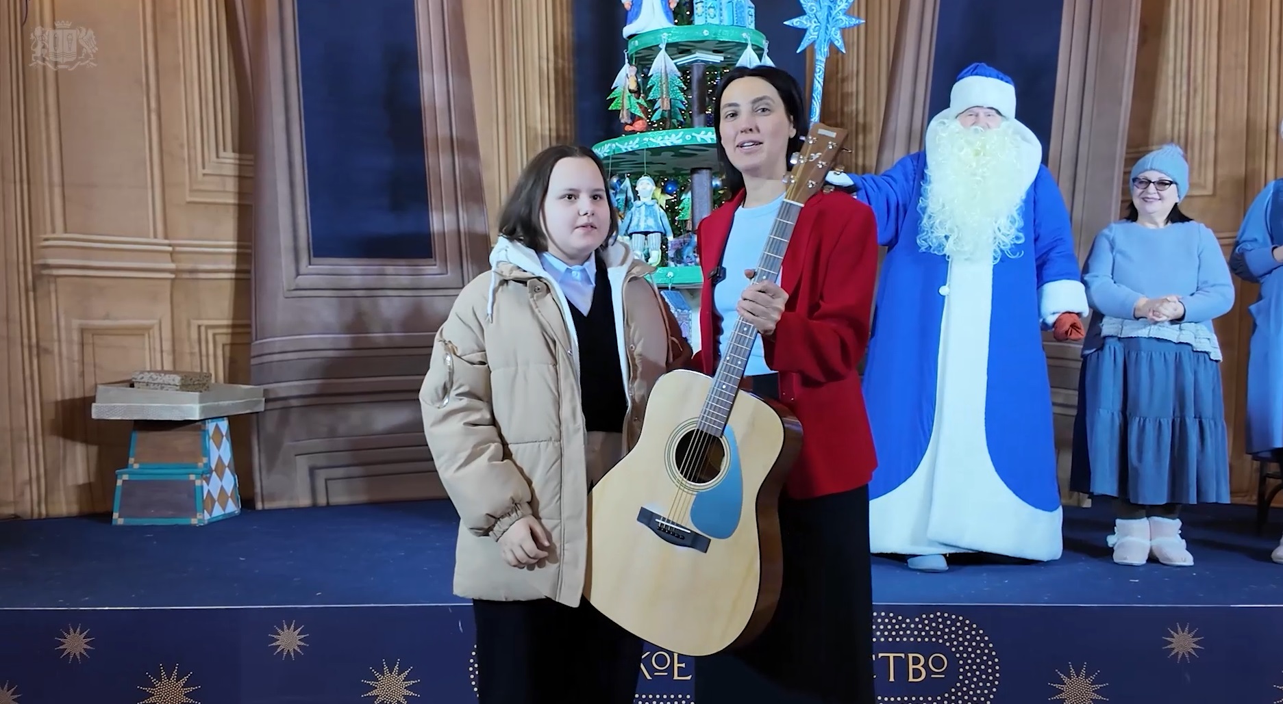 Сегодня во время утреннего спектакля на выставке «Путешествие в Рождество» на железнодорожном вокзале в Иванове загаданную гитару передали девочке. А затем вместе с мамой Ириной Николаевной Карина отправилась на ретропоезде в рождественскую Шую на фестиваль «Русское Рождество».