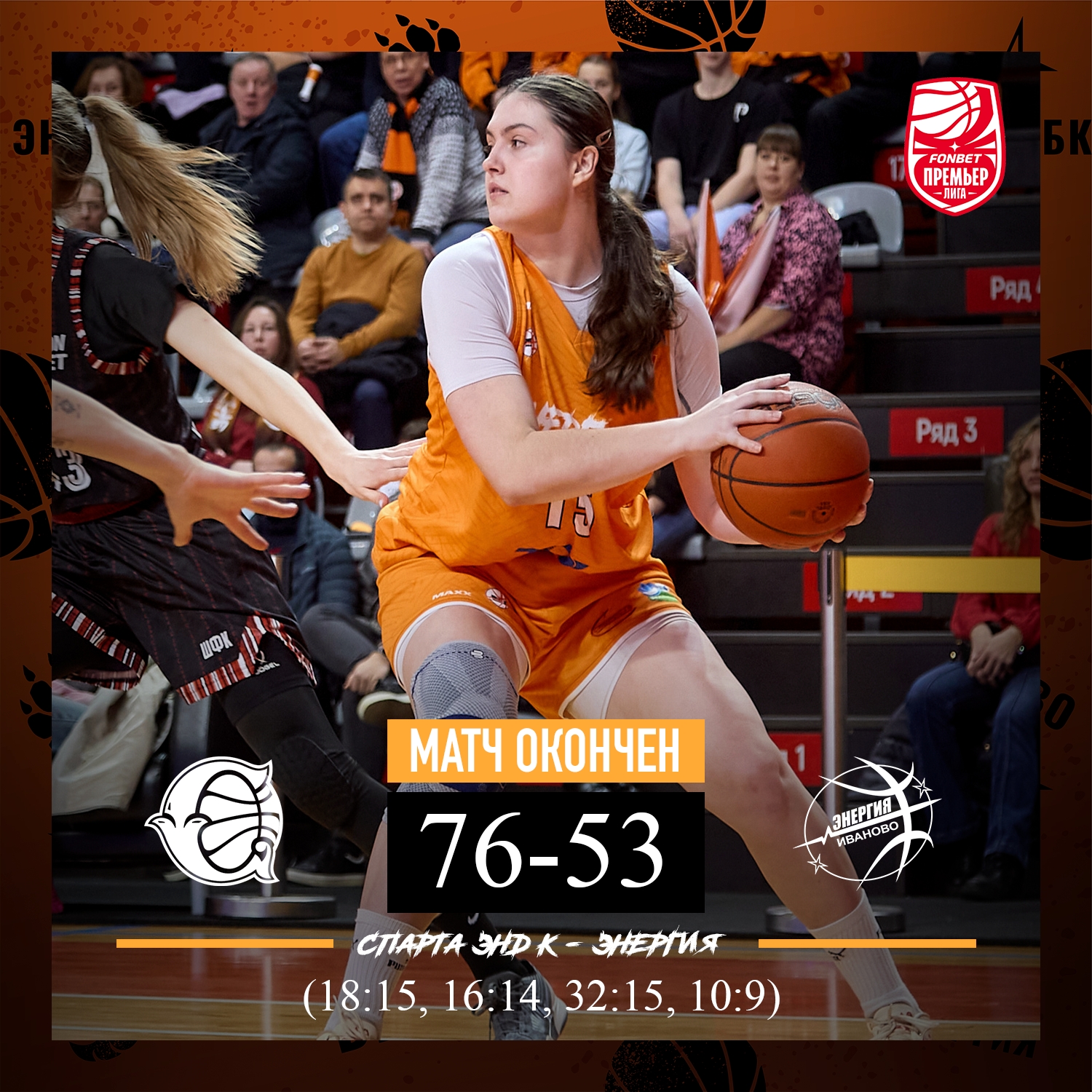 «Энергия» уступила в гостях «Спарте энд К». В субботу в рамках очередного тура Премьер-лиги ивановские баскетболистки на выезде сыграли со своими соперницами из подмосковного Видного, идущими в пятерке лидеров турнира. Встреча завершилась поражением «оранжево-черных» со счетом 53:76. Самой результативной в команде стала Александра Елисеева, набравшая 17 очков. По итогам тура «Энергия» опустилась на последнее место в таблице. Однако одна победа сразу может позволить «тигрицам» подняться в первую десятку. Отыграть утраченные позиции «Энергия» попробует в четверг, когда примет дома омский «Нефтяник-Титан».