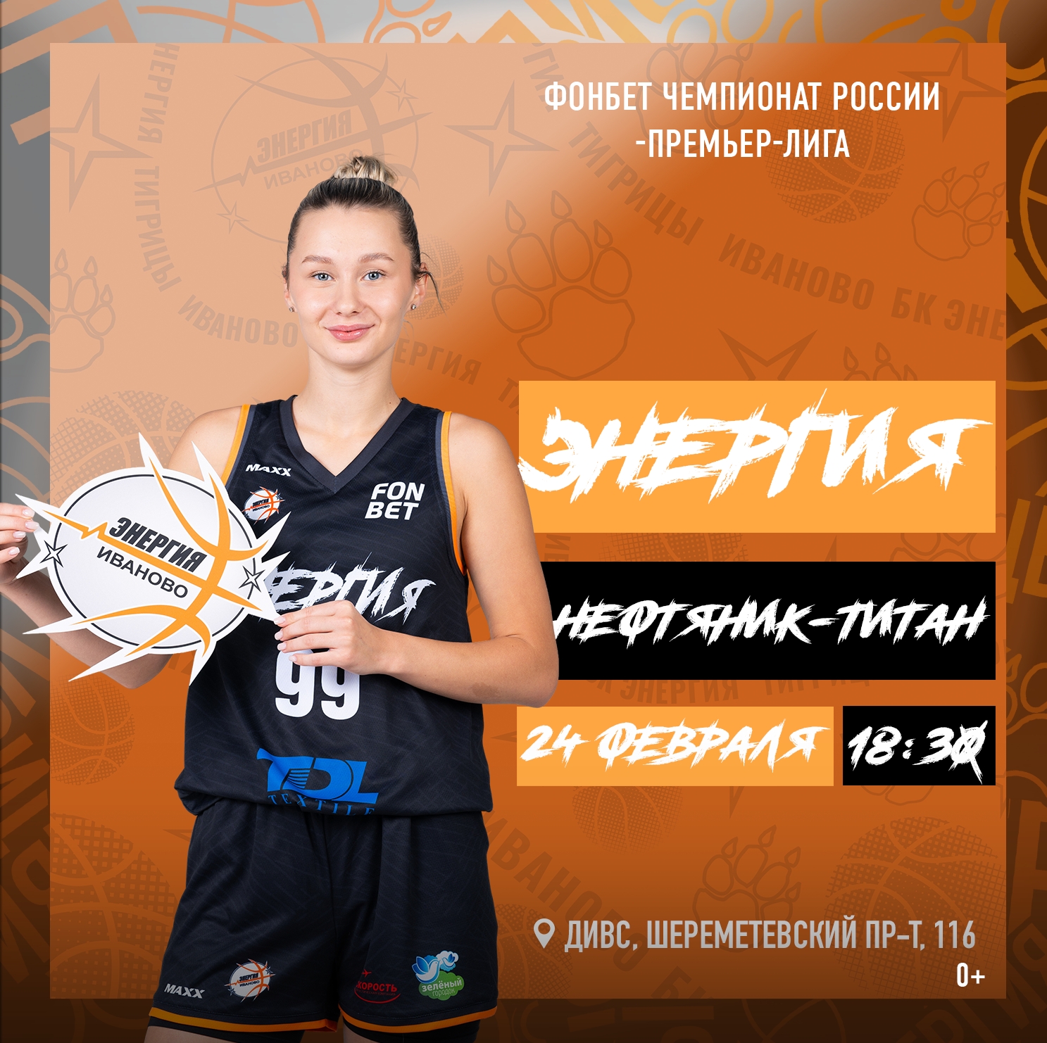 Во вторник ивановская «Энергия» проведет заключительный домашний матч регулярки. Баскетболистки встретятся с омским клубом «Нефтяник-Титан». В случае успеха оранжево-черные могут обогнать соперниц в таблице и подняться в ней на десятое место. Встреча начнется в 18:30 во Дворце игровых видов спорта. После нее «Энергия» на втором этапе регулярного чемпионата Премьер-лиги проведет два гостевых матча. В конце сезона команда будет участвовать в двух турах за девятое место.