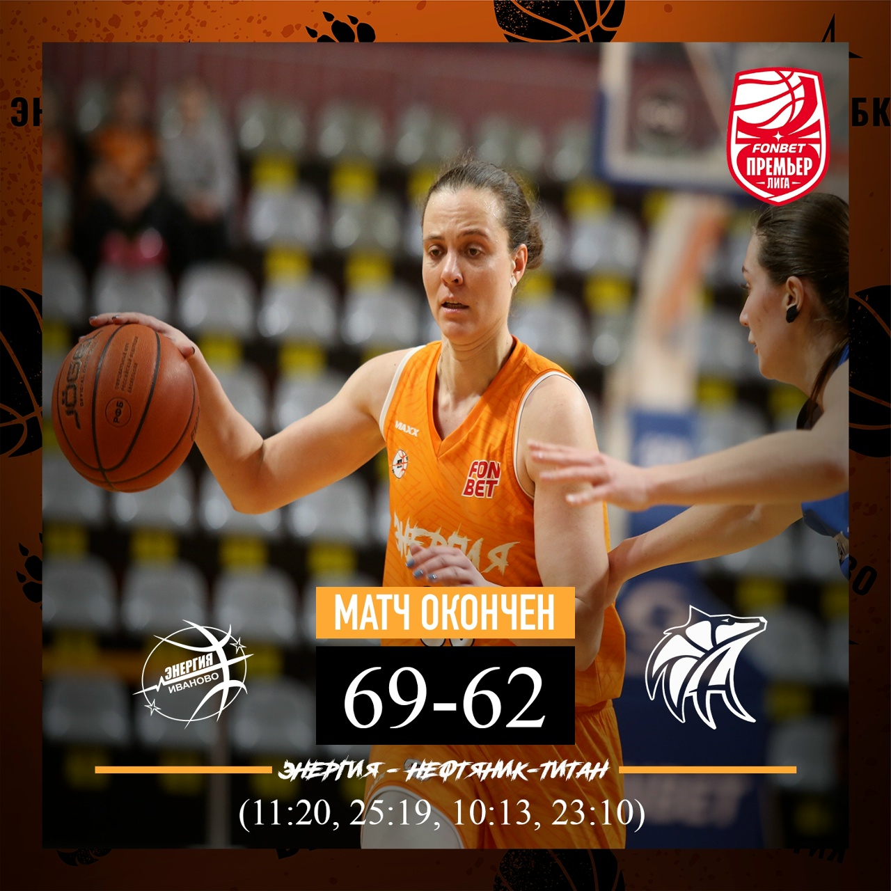 Баскетболистки ивановской «Энергии» прервали серию неудач. В заключительном домашнем матче регулярного чемпионата Премьер-лиги оранжево-черные одержали волевую победу над омским клубом «Нефтяник-Титан» со счетом 69:62. Самыми результативными у хозяек стали Екатерина Рябова и Александра Елисеева. По итогам поединка коллектив Дмитрия Шумихина остался на одиннадцатом месте в таблице. До конца регулярки команда проведет две гостевые встречи. Первая из них состоится уже в эту субботу. В ней «Энергия» сразится с аутсайдером чемпионата – новосибирским «Динамо». Сюжет об этом матче смотрите сегодня в вечернем выпуске «Вести-Иваново» в 21:10.