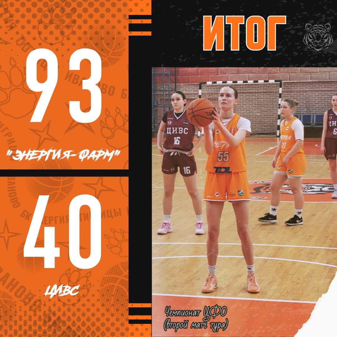 Ивановская «Энергия-Фарм» порадовала болельщиков. В рамках домашнего тура женского чемпионата ЦФО резерв «тигриц» в двух матчах разгромил тульский ЦИВС (82:44 и 93:40). Эти игры стали для коллектива Александра Снигирёва заключительными на родной площадке. В марте до конца регулярного чемпионата «Энергии-Фарм» осталось провести шесть выездных встреч. Пока они идут в чемпионате на четвертом месте.