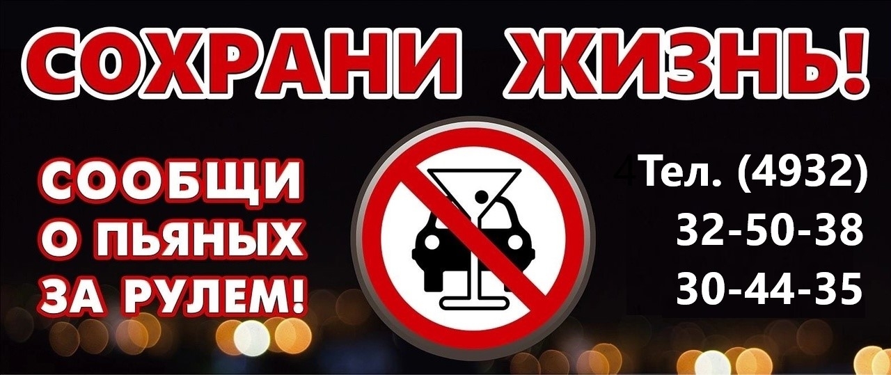 В Госавтоинспекции региона призывают автомобилистов не садиться пьяными за руль, а если жители стали свидетелем подобного правонарушения – звонить в дежурную часть по телефонам (4932) 32-50-38 или 30-44-35.