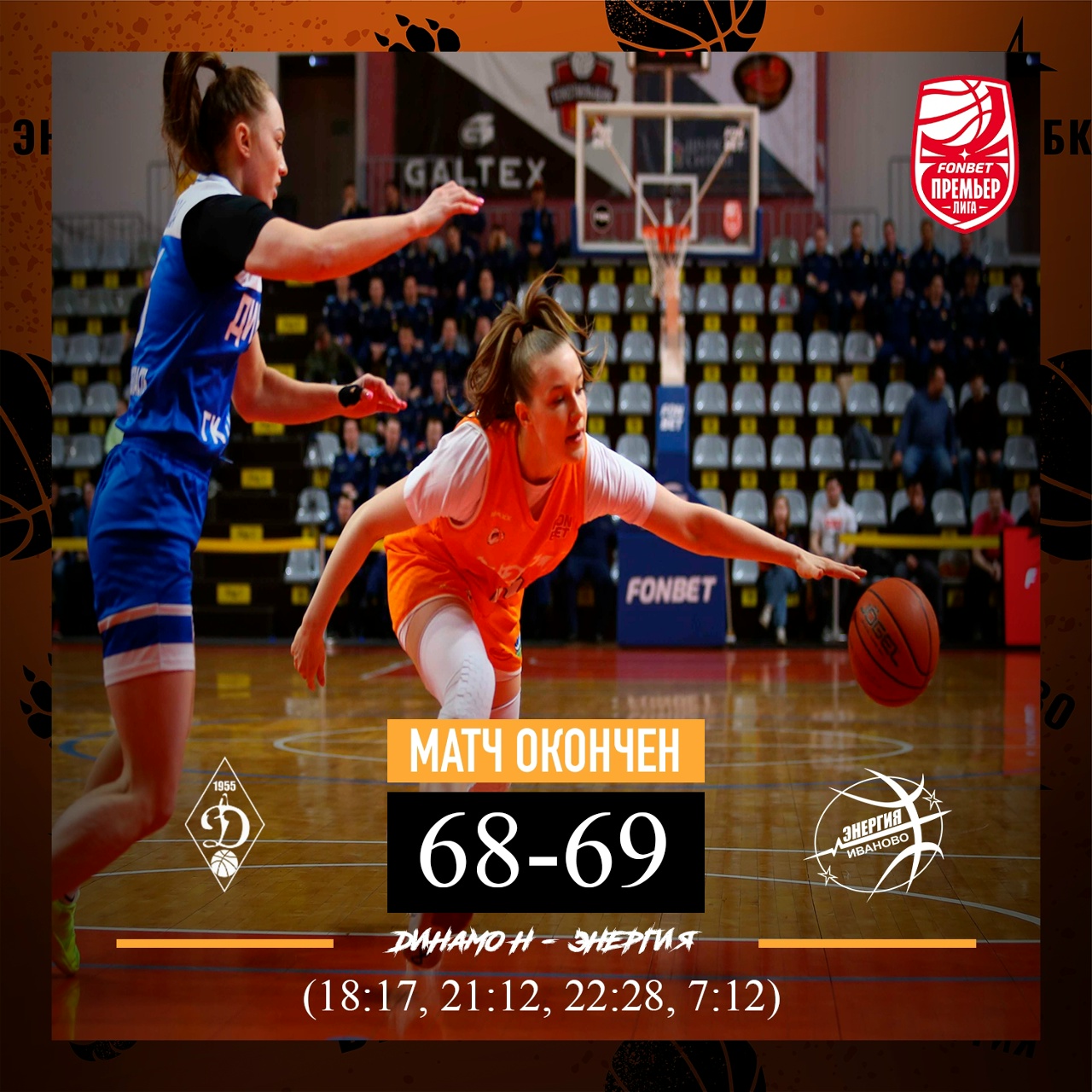 Баскетболистки ивановской «Энергии» снова победили новосибирское «Динамо». Вчера встреча финального этапа турнира за девятое место Премьер-лиги завершилась минимальной победой оранжево-черных со счетом 69:68. Победный бросок на последней секунде поединка совершила Александра Елисеева. Она же с 18 очками стала самым результативным игроком в составе «тигриц». Сегодня коллектив Дмитрия Шумихина в 18:30 сыграет в рамках этапа с лидером группы – омским клубом «Нефтяник-Титан». Болельщики могут бесплатно посетить Дворец игровых видов спорта.