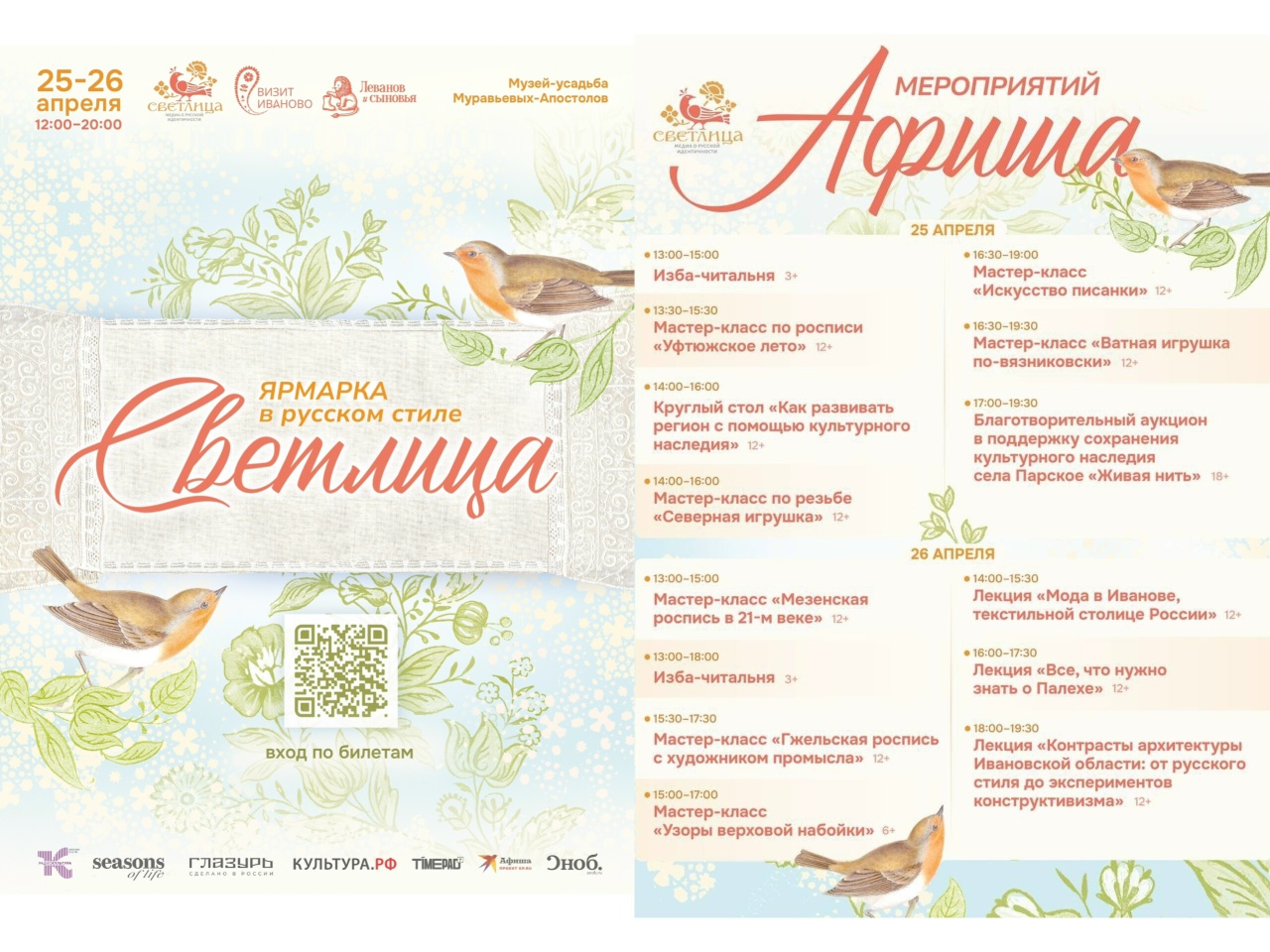 Культурная программа «Дни Ивановской области» состоится в Москве. Мероприятие реализуют в 6-й раз в рамках ярмарки брендов в русском стиле «Светлица». Лекции, мастер-классы и круглый стол пройдут 25-26 апреля. С гостями события поговорят о развитии моды, народных промыслах и архитектурных традициях нашего региона. За «столом» участники обсудят успехи ивановских проектов, разбирая практические инструменты привлечения туристов, повышения уровня жизни и другие. Посвященные сохранению национального достояния «Дни Ивановской области» объединят ремесленников, художников и дизайнеров.