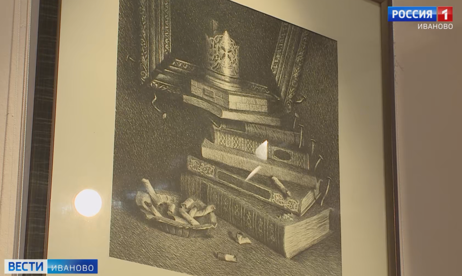 «Смотрите, здесь много окон. Он часто пишет из окна. Это высочайший уже пилотаж, когда не надо искать, лезть на Эверест, чтобы увидеть красоту. Самое главное, что из простых бытовых предметов можно создать целый мир. Вот это уже уникальное. И так и называется - художник-творец», - сообщил Олег Колбашов, председатель Ивановского отделения Союза художников России.