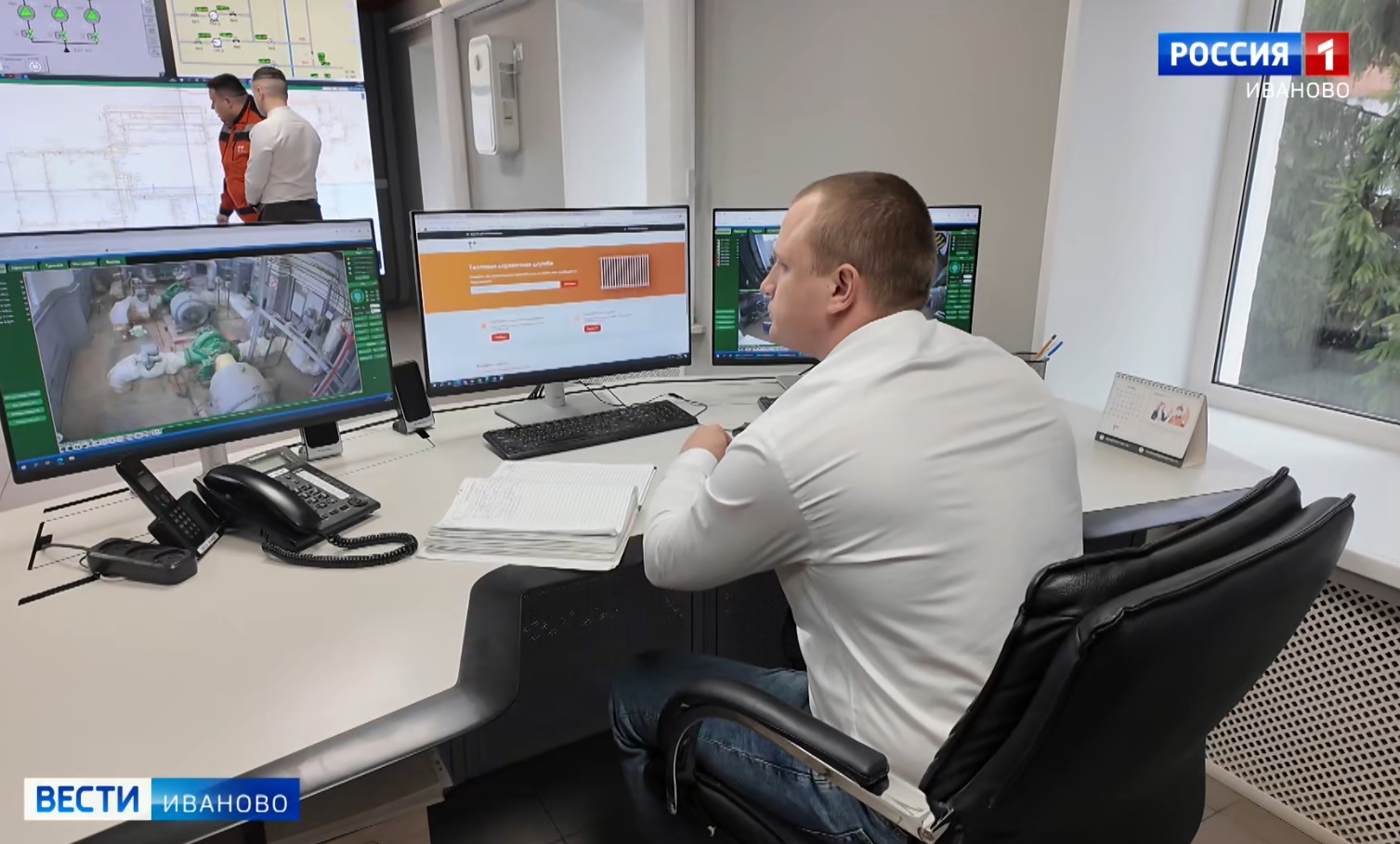 Пункт управления оперативно-диспетчерской службы. На стене огромные плазменные мониторы. На них - схемы магистральных и распределительных сетей. От выхода со станции до каждого конкретного дома. За тепловым хозяйством города следят в режиме онлайн. Температура теплоносителя, состояние инженерных коммуникаций, давление внутри трубы - вся телеметрия перед глазами диспетчера.