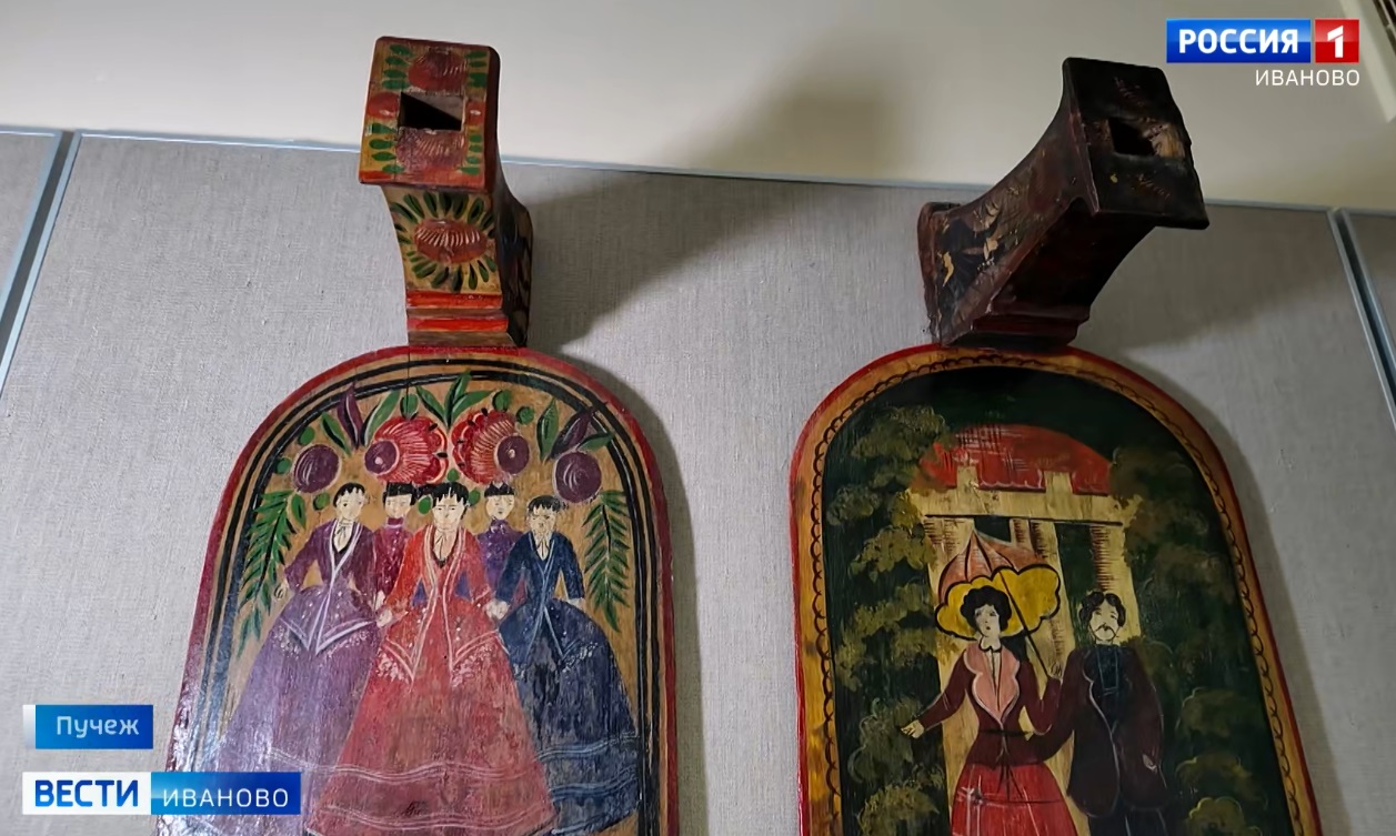 Сергей Веселов, корреспондент: «В этом зале чувствуется дыхание старины. Здесь собраны предметы крестьянского быта. И это не какие-то реплики, а настоящие вещи, которые использовались в хозяйстве. Обратите внимание вот на эти элементы старинных прялок. Они покрыты резными узорами, либо расписаны краской. Крестьянская жизнь была довольно однообразной. И наши предки пытались её хоть как-то украсить. А это настоящая старинная деревянная борона. В ней нет ни одного гвоздя. Все элементы конструкции скреплены эластичными стеблями кустарника. Такими орудиями возделывали землю на берегах Волги до начала XX века. Первый трактор в Пучеже появился только в 30-м году».