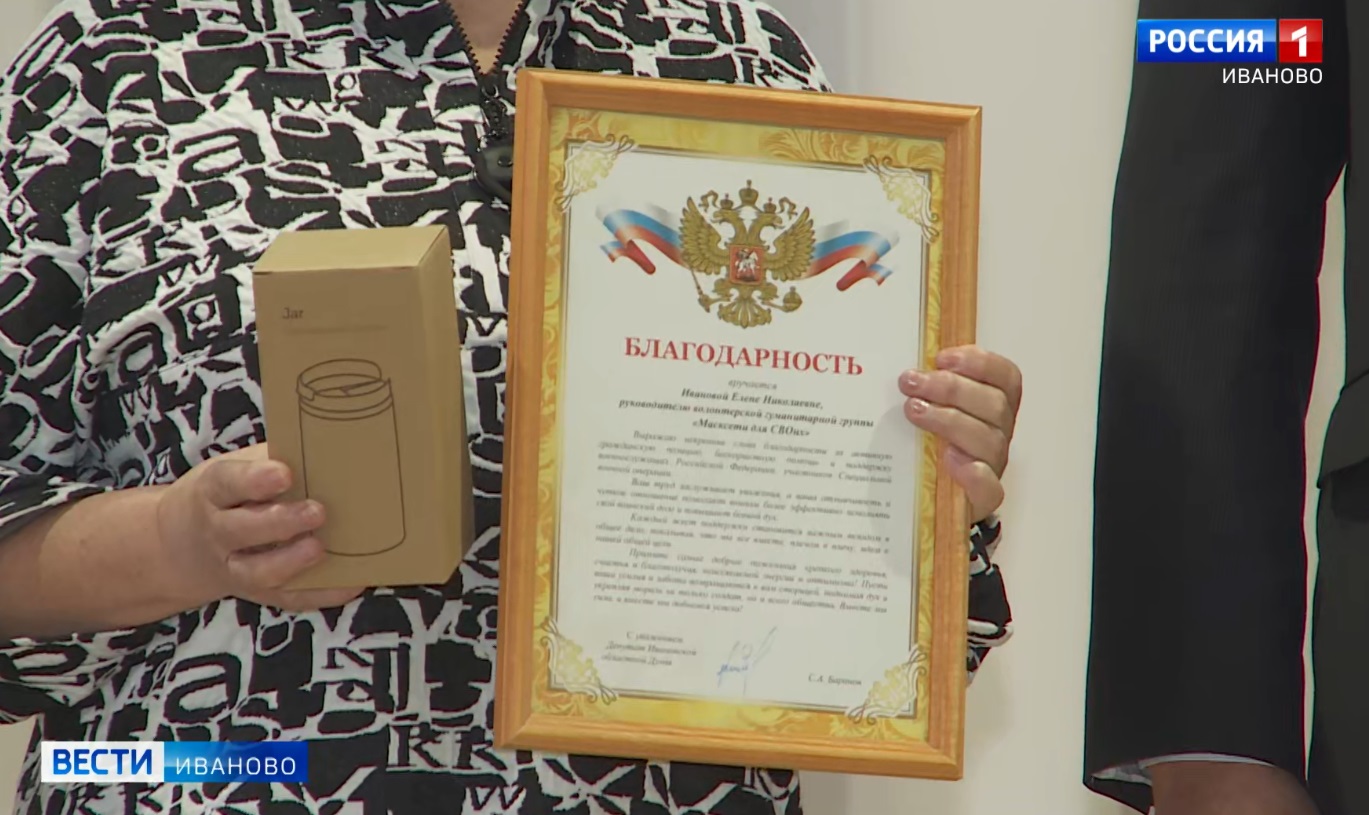 На форуме подвели итоги работы за минувший год и отметили тех, кто помогает нашим ребятам - плетет маскировочные сети и костюмы, делает сухпайки и окопные свечи, шьет одежду и вяжет теплые вещи. А еще сражается на информационном фронте. От регионального штаба #МыВместе - слова признательности - нашей коллеге Ирине Хаустовой за цикл передач «СВОИ». А также всей гостелерадиокомпании. ГТРК «Ивтелерадио» регулярно снимает сюжеты про сбор и отправку помощи, работу гуманитарных групп, судьбы бойцов и их семьи.