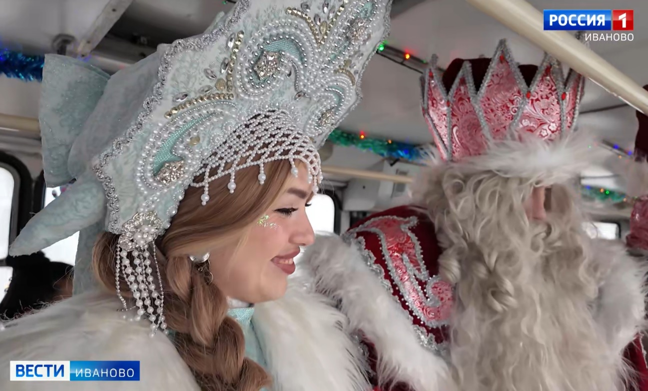 Главных новогодних персонажей можно встретить на 11-м маршруте. Праздничный троллейбус курсирует по нему от аэропорта до железнодорожного вокзала по двум главным городским магистралям: Лежневской улице и Шереметевскому проспекту.