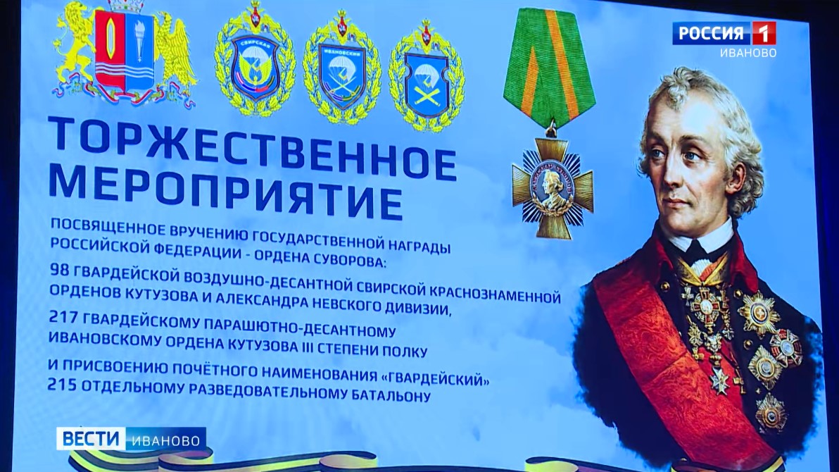Накануне Дня Защитника Отечества состоялась торжественная церемония прикрепления Орденов Суворова к боевым знаменам. Кроме того, заслуженной Георгиевской лентой украсили реликвию 215-го отдельного разведывательного батальона 98-й дивизии, которому присвоено почетное наименование «Гвардейский». Замкомандующего ВДВ Сергей Чубарыкин, проводивший воинский ритуал, отметил в своем выступлении важность взятия Часова-Яра ивановскими десантниками для полного освобождения Донбасса.
