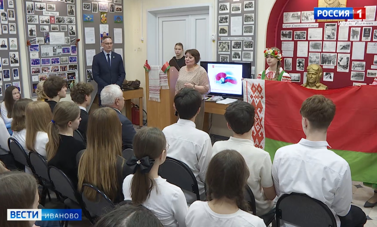 Белорусская речь в музее 56-й ивановской школы звучит не просто так. Здесь проходит особенная встреча. Повод - 30 лет с момента заключения договора о дружбе между Россией и Белоруссией. Но это дружба и единение братских народов уходят корнями вглубь веков, об этом рассказывают старшеклассникам 56-й ивановской и коляновской школ.